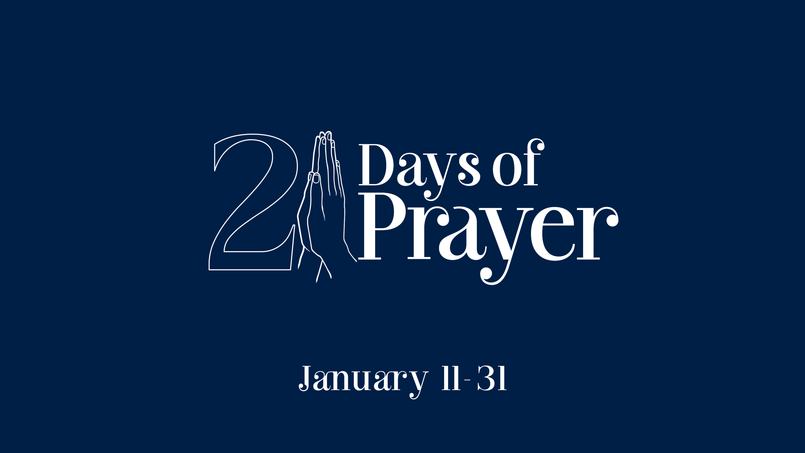 Join us as we dedicate 21 days to intentional prayer as a church, January 11th through the 31st. Follow along with daily prayer prompts & our digital prayer journal.